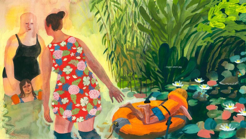Ingen utom jag är en berättelse om att lossa knuten till båten som är förankrad vid bryggan och att glida bort från mamma som alltid finns i närheten.